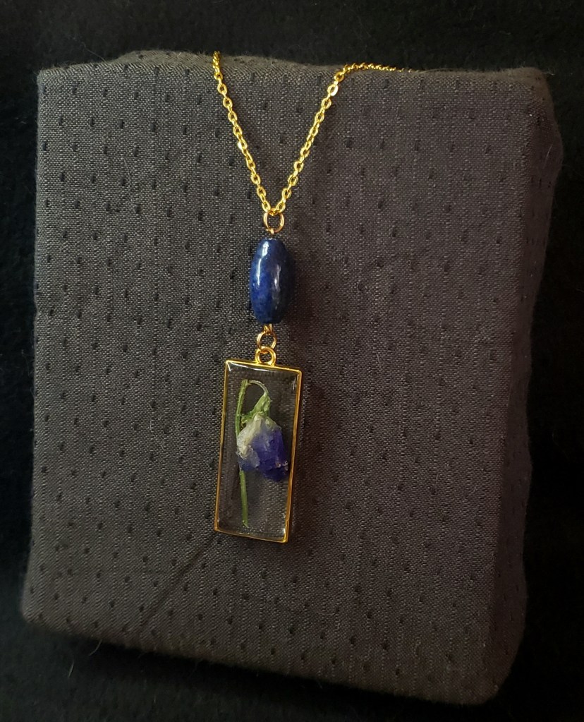 jewelry handmade jewelry with locally foraged floral encased in resin Sweet pea blossom, lapis lazuli, 18k gold plate chain pansy, citrine, 18k gold plate chain & findings hydrangea, amethyst & ceramic, 18k gold chain & findings cherry blossom, freshwater pearl, sterling silver chain Share this: Share on X (Opens in new window) X Share on Facebook (Opens in new window) Facebook Like Loading...