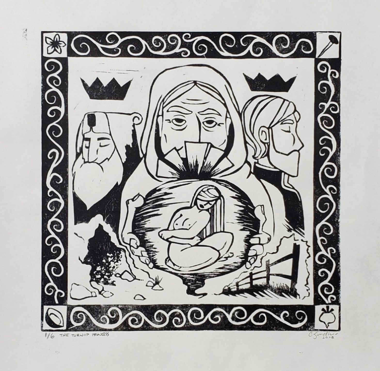 the turnip princess- 12×12 lino print on bamboo paper edition of 6 2018